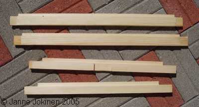![]() Ostin mehiläistarvikekaupasta valmiita listoja, joista liimamalla sain helposti välilentoaukkoja pesiin hunajalaatikoiden väliin. Vastaavista lentoaukottomista listoista sai korokekehiä esim. mehiläispakoja varten. ![]() Edellisenä kesänä sadonkorjuu osoittautui todelliseksi riesaksi, kun hunajaa pesistä viedessä mehiläiset suutahtivat pistämään ja loppukesän koleilla (ryöstö)keleillä pörräsivät välittömästi hunajakakkujen harjauksen jälkeen takaisin kehälle. Tämän vuoksi päätin kokeilla mehiläispakojen käyttöä. Mehiläispako on viritys, minkä kautta mehiläinen pääsee kulkemaan käytännössä vain yhteen suuntaan - hunajalaatikosta pois- eli alaspäin - eikä löydä reittiään takaisin. |