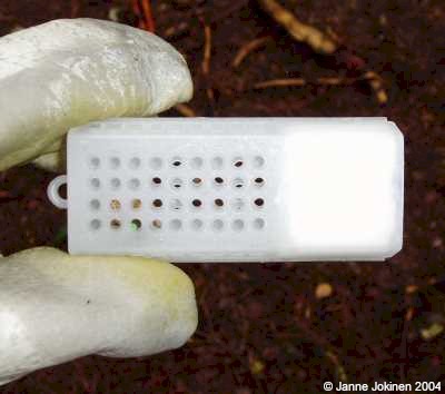 Emonantovaroituksia Sijoitin pesiini kesällä 2004 eri tilanteissa yhteensä neljä ostoemoa, jotka kaikki hyväksyttiin pesiin. Aina emot eivät kuulemma kuitenkaan kelpaa. Kannattaa siis olla huolellinen emojen pesäyttämisessä, koska ostoemot ovat niinkin kalliita. Parveilun estoon liittyvällä sivulla olen käsitellyt "varmana" mainostettua menetelmää emojen antamiseksi. Tämä menetelmä ei tietenkään toimi jaokkeen kanssa (jaokkeeseen tulee paljon mehiläisiä mukaan, kun taas "varmassa" menetelmässä vain jokunen), mutta jaokkeessa on kuitenkin nuoria mehiläisiä (hyväksyvät emot parhaiten) tilanteessa, jossa niillä ei ole emoa, jolloin todennäköisyys emon hyväksymiselle on kuulemma hyvä. Karmealta on kuitenkin tilanne välillä näyttänyt, kun emottomalle pesälle on antanut emokalikan. Heti ovat olleet ärhäkkänä kalikan ympärillä, kalikka löytyi seuraavalla käynnillä avattuna mutta emosta ei jälkeäkään... nuoret emot ovat minun vähäisen kokemukseni mukaan hyvin arkoja ja nopealiikkeisiä, ja osaavat vikkelästi liikkua tarhaajaa karkuun siten, ettei niitä välttämättä näe pesästä vaikka sinne olisivat kelvanneetkin. Toisaalta eivät ole aina ryhtyneet munimaan melkein viikkoonkaan, eli munatkaan eivät heti paljastaneet emoja. Kummajainen oli kerran ihmeellinen mehiläisrypäs, joka "valui" nopeaa vauhtia kehiä pitkin laatikon pohjalle ja sieltä ties minne. Kuvittelin nähneeni vilauksen vihreästä (emojen vuoden 2004 merkkausväri), mutta tuomitsin tämän pian harhaksi ja ihmettelin rypästä. Nettikeskustelussa kertoivat kuitenkin tuollaisesta ryppäästä, minkä keskelle uusi emo voi joutua... ihme porukkaa. Keskeinen idea omassa emontuotannossa olisi vähentää kustannuksia ja etenkin kustannusriskejä, koska hyvin epävarmalla pohjalla tuo emoutus mielestäni on, vaikka 100 %:n tulokseen pääsinkin. Muita kokeilujani lisätä pesämäärää Kesällä 2004 tein yhden jaokkeen ja kaksi perveilun eston yhteydessä syntynyttä pesää, joista enemmän parveilunestosivullani. Sattuipas kuitenkin tulemaan yhden ostopesäni mukana turhan vanha emo, eli kaksivuotinen (vuodelta 2002, keltainen merkkiväri). Yleensä emot vaihdetaan kahden vuoden iässä, minkä päätinkin tehdä - viime kesänä perusongelma oli parveiluinto, mutta luulin tuon yhden pesän yrittävän huonon emon hiljaista emonvaihtoa, vaikka jälkiviisauden mukaan olikin parveilukuumetta. Vaihdoin pesään uuden emon, mutta emojen myyjä kehoitti kuitenkin laittamaan vanhan emon jonnekin jemmaan pienen mehiläismäärän kanssa, siltä varalta että uusi emo ei pesälle kelpaisikaan. Laitoin vanhan emon 1.7. uuteen pesälaatikkoon (ei ollut erityisiä pikkupesiä) yhden peittosikiökakun, yhden rakennetun kehän, kahden vahapohjukekehän ja ruokintakehän kanssa. Ajattelin yhdistää mehiläiset (ilman emoa) takaisin emäpesään heti uuden emon annon onnistuttua, mutta vanha emopa oli todella hurja munimaan! Pesä paisui hyvin vahvaksi yksilaatikkoiseksi pesäksi heinäkuun aikana, minkä vuoksi aikanaan päätin antaa sen talvehtia omillaan. Yhden sikiökakun investoinnilla "jaoke" lähti siis hyvin vauhtiin. Tämän porukan kanssa tuli kuitenkin ongelma, koska minulta loppuivat kesällä pesälaatikot kesken kriittisessä vaiheessa. Pesä oli kerännyt laatikon täyteen hunajaa ja emolta väheni munintatila, mitä en sattuineista syistä tajunnut tarpeeksi ajoissa. Talvimehiläismäärä jäi siis kuitenkin melko pieneksi ja pesä mehiläismäärältään pienimmäksi talvehtijakseni - kokeneempien tarhaajien nyrkkisääntöjen mukaan talvehtimisvahvuus olisi tosin riittävä, mutta pesä on muutenkin vähän kokeilupesä, kun yritän talveutusta noin vanhalla emolla. Jatkossa tutkin lisää tapoja tehdä jaokkeita jo hyvin aikaisessa vaiheessa kesää - hunajamäärä kärsinee aikaisesta sikiöiden pöllimisestä muista pesistä, mutta miten vähäisellä peittosikiömäärällä pesä saataisiin talvehtijaksi? |